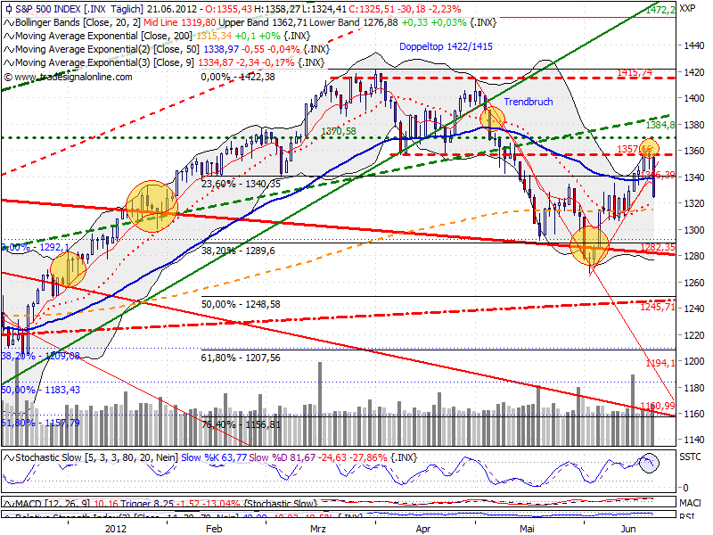 Während die US gestern dynamische die EMA 9 Tagescharts rissen, hielt diese im Dax. Wobei wie fast immer außer im starken Ausverkauf, reagieren die US Future nach einem starken Tagesverlust und steigen vorbörslich leicht an. Dies kommt dem Dax natürlich zugute.