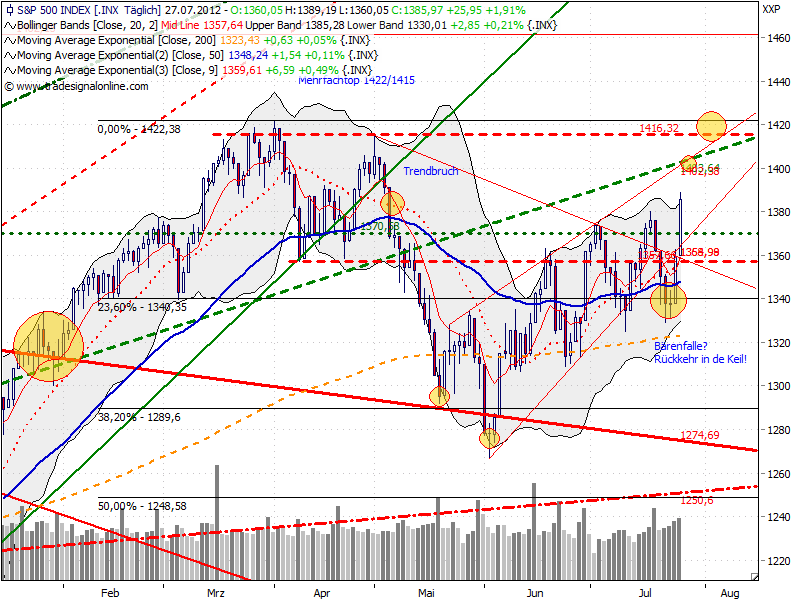 Widerstand dürfte der Bereich 1374 F, kurzfristiges Doppelhoch sowie der maßgebliche ABT vom JH bei aktuell 1382 F sein.