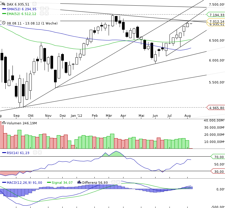Sollte es dort einen Ausbruch geben, dürfte sich der Trend fortsetzen. Ein größeres Kaufsignal würd e entstehen mit zunächst Ziel, dem maßgeblichen ABT vom AZH bei aktuell 7405.
