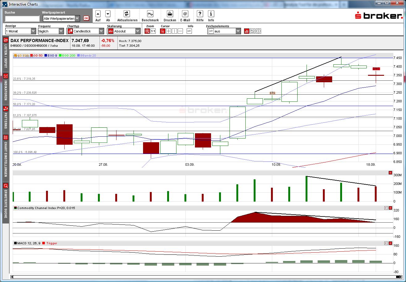 Als am Freitag die Kurse nach oben schossen, war dies nach dem Rollover meines Anbieters von 77 Pkt. zwischen Index und dem neuen Futurekontrakt, nichts weiter als ein kurzfristiges Doppelhoch im Bereich 13570/74 F.