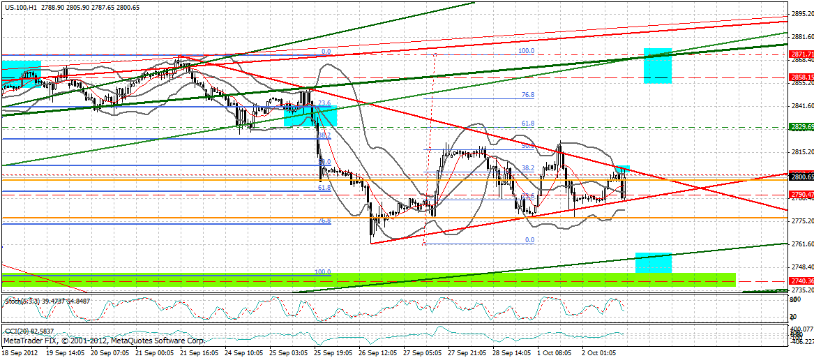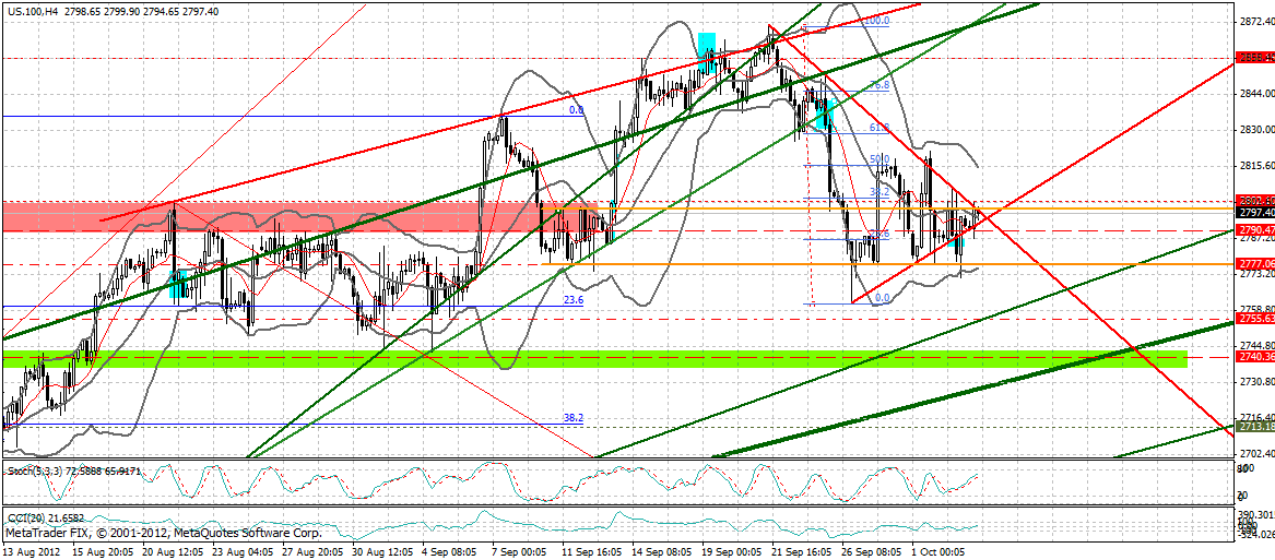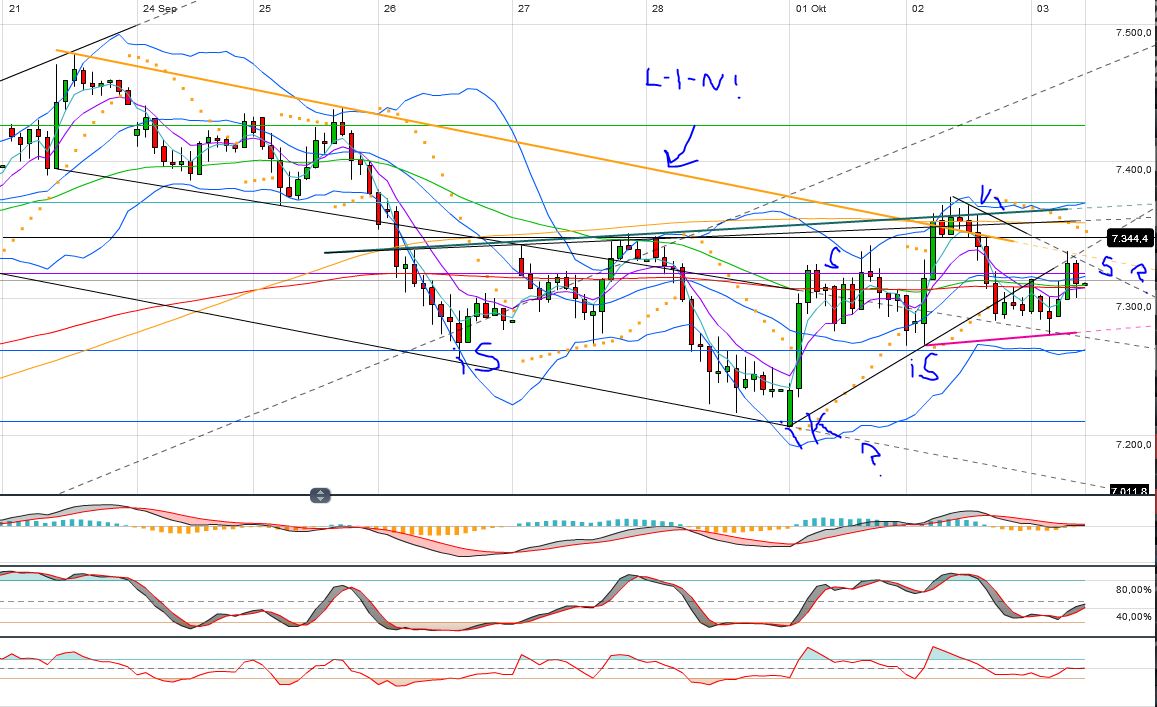 Übergeordnet könnte man im NDX aber auch von einem fallenden Dreieck mit unterer Begrenzung bei den 2777 F ausgehen. Diese Möglichkeit sollte man auch noch im Hinterkopf haben.