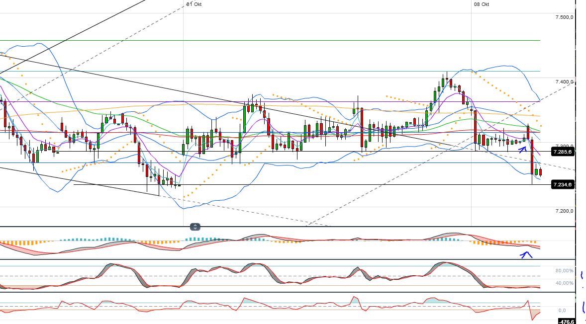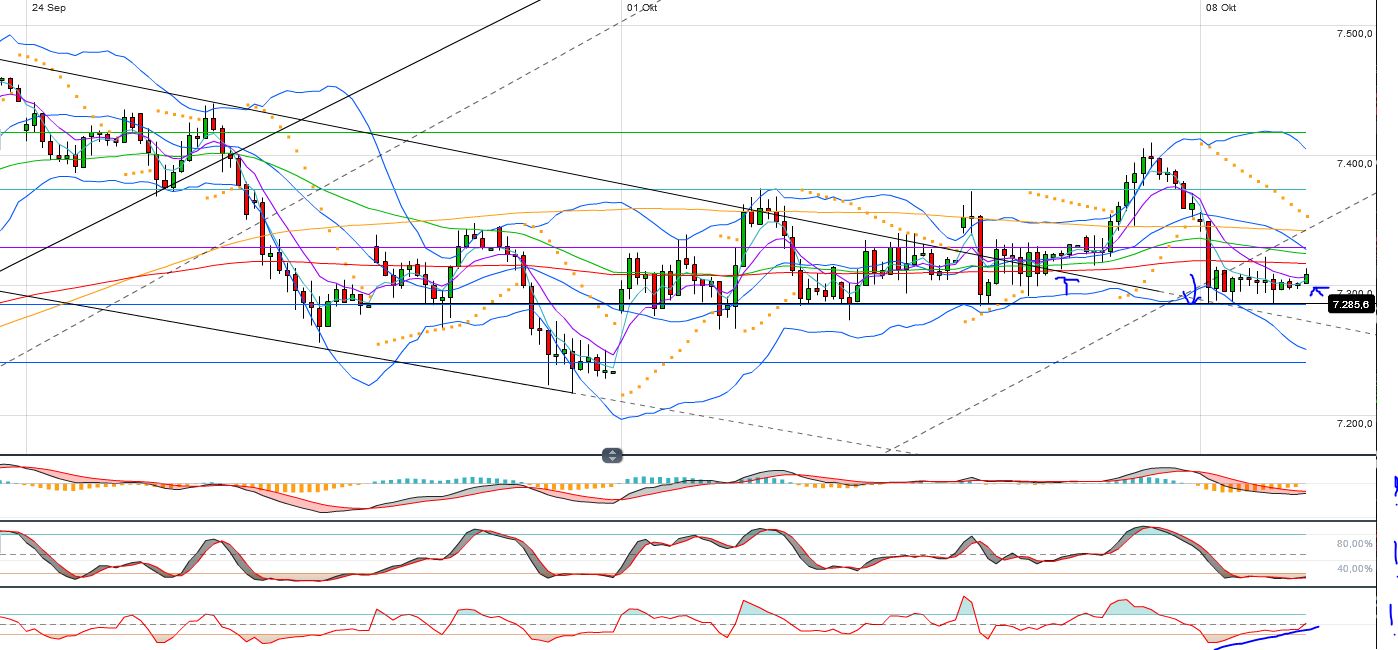 Ein Rücklauf bis zum gebrochenen AUT bei aktuell 7360 F wäre nur als eine Erholung zu werten.