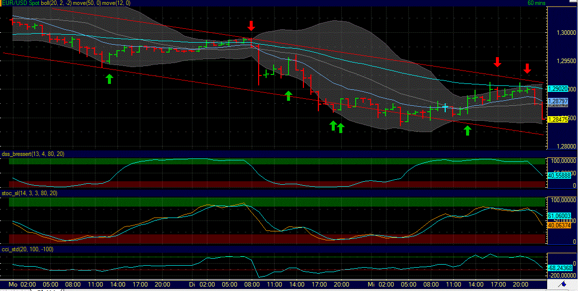 Der Euro zog in einem ABTK in die Tiefe und erreichte fast das VT bei 1,2804.