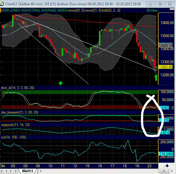 In den vergangenen Wochen ist der DJ nach dem starken Anstieg seitwärts in einer Schiebezone 13353/13645 "gefangen". Diese reicht erweitert zur Unterseite noch bis 12280 ( HU altes JH)