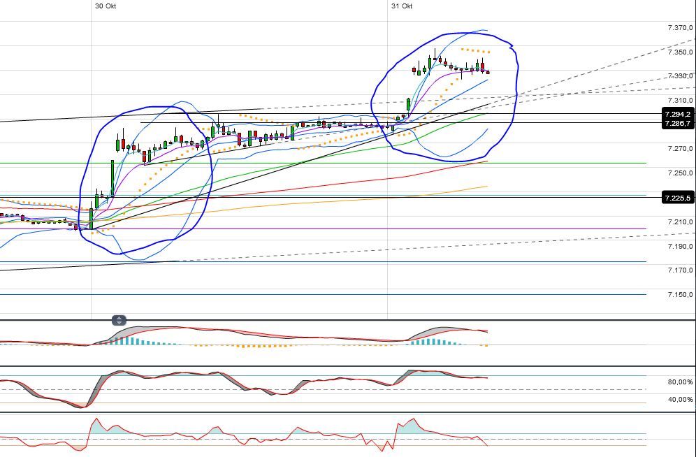 Oberhalb dem gestrigen TH bei 1418 F wäre daher für mich die einwöchige Seitwärtsphase gebrochen und das anvisierte Erholungsziel 1433 F dürfte das Ziel sein.