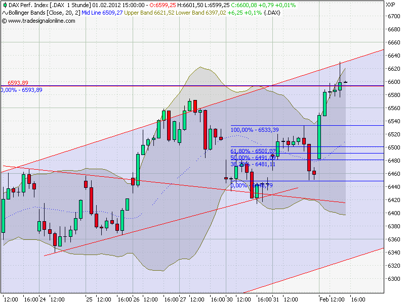 Das 23,60er der laufenden Aufwärtsbewegung könnte aber letztlich nochmal Anlaufpunkt sein. (Marke 6440 F) Dort sollte man weiterhin bevorzugt den Call-Bereich nutzen.