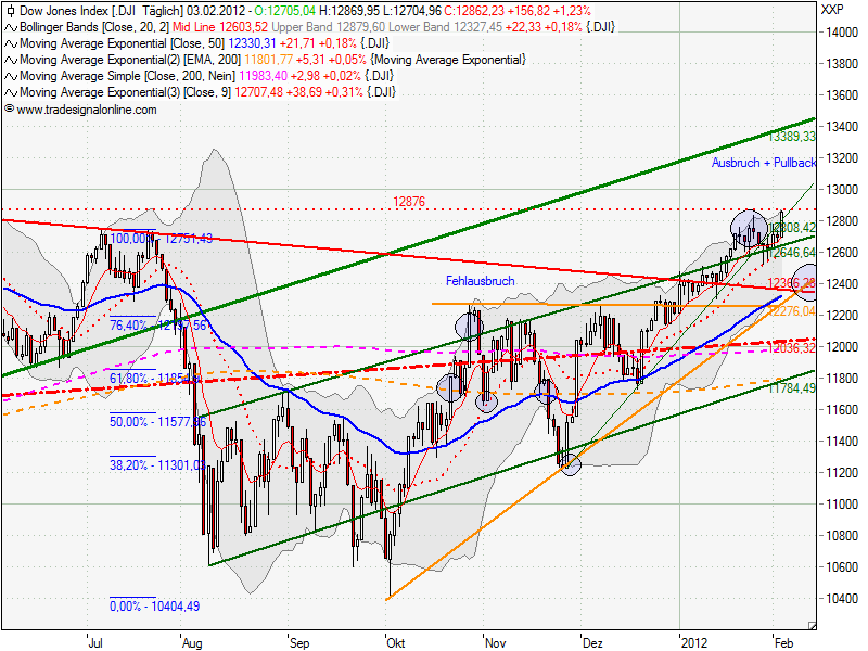 1.) Der DJ ist aus seinem steigenden Dreieck bei 12284 ausgebrochen.