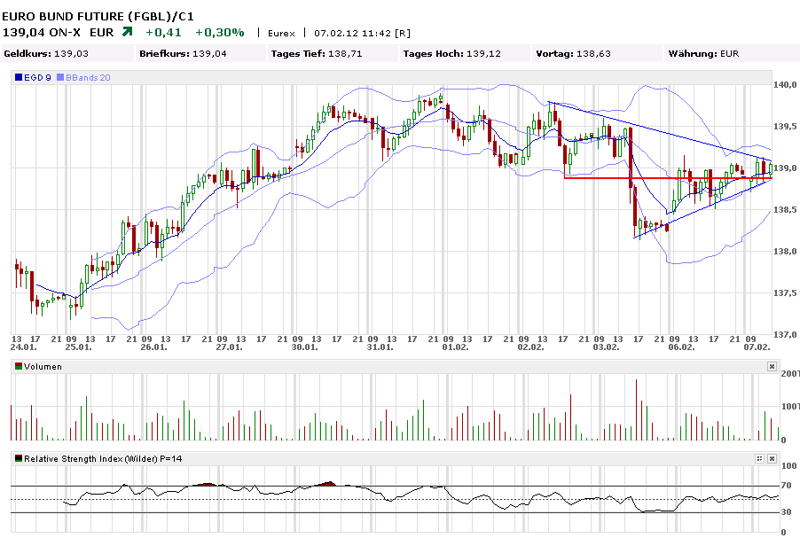 Auch gestern hielt die untere Dreiecksbegrenzung, nach dem es zunächst nach einem Ausbruch zur Unterseite aussah. Letztendlich hielt die weitere HU 1,303 , unterhalb des größeren Unterstützungsbereich 1,305/75.