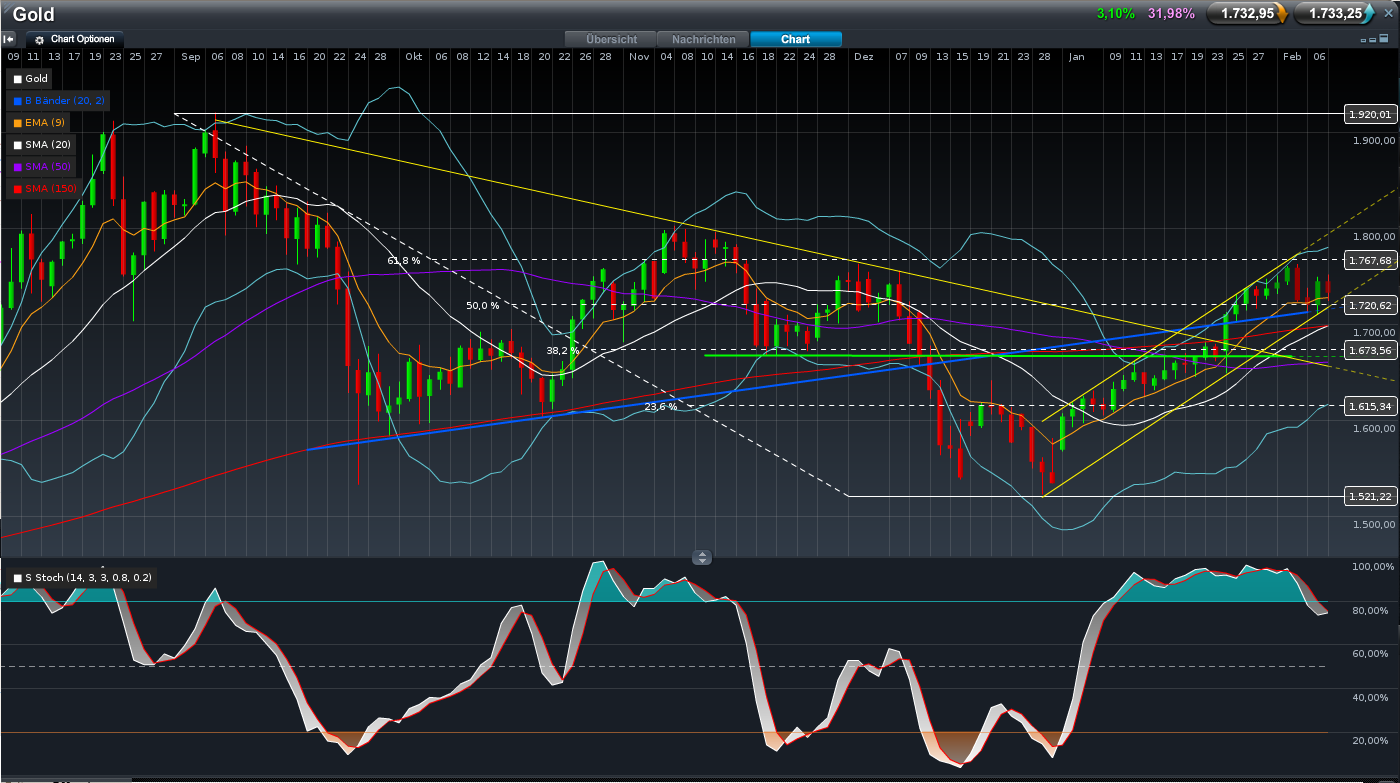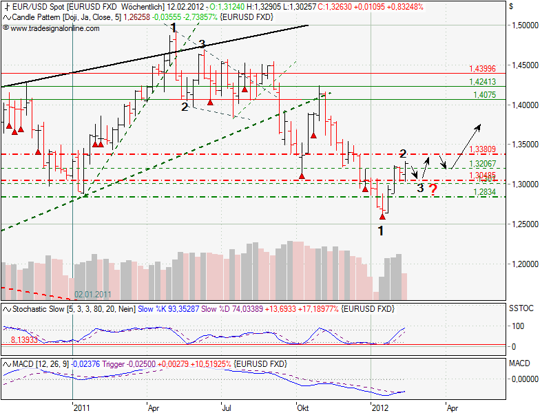 Viel tiefer darf es aus Bullensicht nicht gehen, da sonst wieder die massive Unterstützung 1,303/75 angetestet wird.