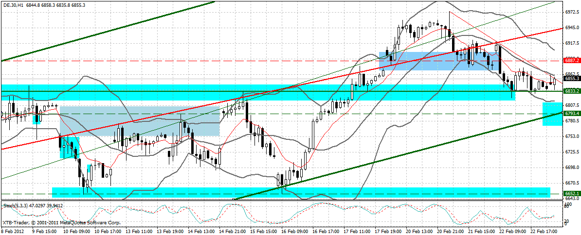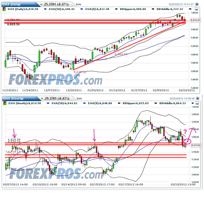 Die 6833 F Hauptunterstützung war für mich die maximale Begrenzung des Abverkaufs. Aufgrund des Volumens bin ich zunächst davon ausgegangen, das die Abverkaufswelle das Future-Gap nicht wesentlich unterschreitet. Um also in einer Aufwärtsbewegung einen Profit zu machen, wählte ich die untere Marke meines Save-Calls per Buy-Limit. So weit so gut.