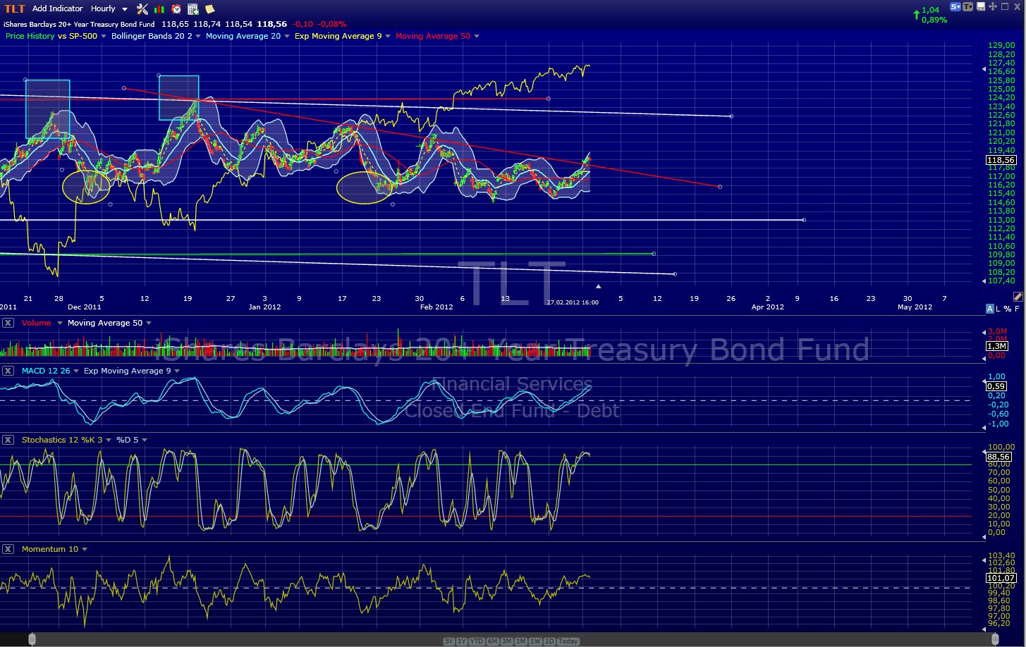 ich wollt nur mal kurz auf die 20jährigen staatsanleihen hinweisen, denn trotz der tatsache das wir heute neue jahreshochs in den us-aktienindizes gesehen haben, sind diese gerade dabei den downtrend (rot) seit mitte dez11 zu überwinden, muss aber noch nachhaltiger sein. außerdem bewegen sich diese auf dem niveau vom anfang des monats, als der s&p noch knappe 50handles tiefer stand!