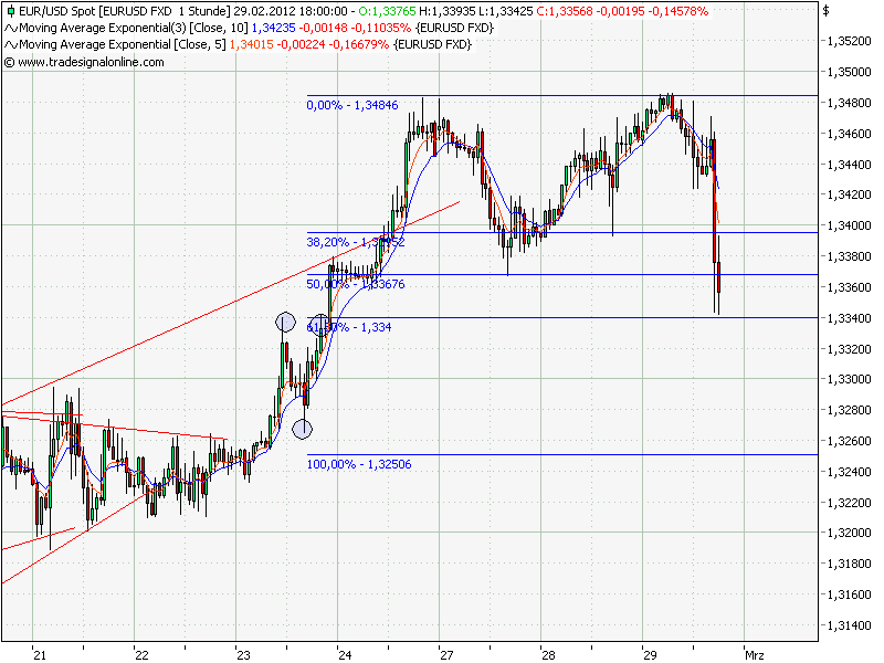 Eben ging es unter 1,3364 dem gestrigen TT, so dass das Doppel-Top ausgelöst wurde.