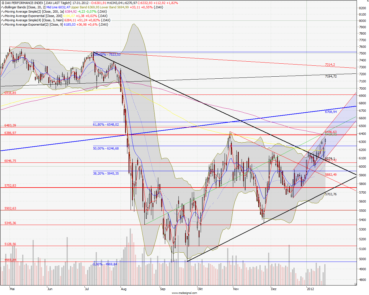 Bzgl. DOW hier daily von 2007 bis Heute - ich dachte eigentlich, dass bereits am ersten Widerstand Trendwende einkehrt - der Spass hat mich leider paar Euronen gekostet weil DAX dermaßen aufdreht - DOW und SPX bisher ohne Überraschung. Allerdings sehe ich aktuell hier nur noch wenig Luft nach Oben - von daher rechne ich mit Trendwende und einer Bewegung Richtung 11000.