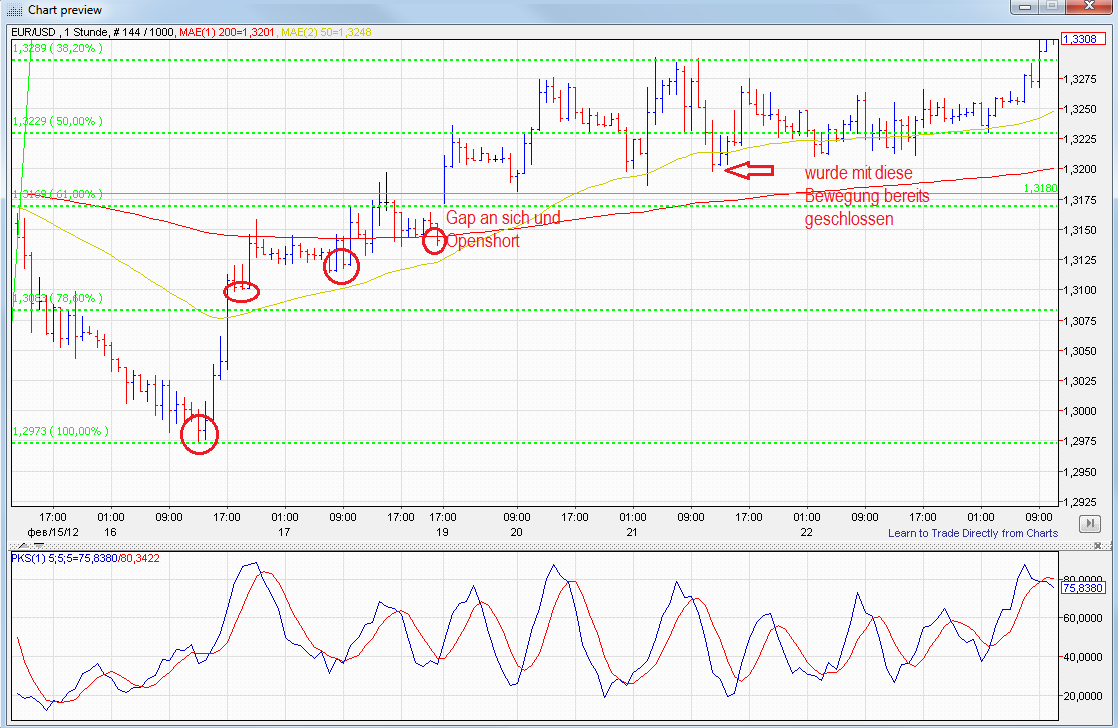 oder nach dem Bruch des Schlusskursniveaus erfolgen. Bei einem Abwärts-