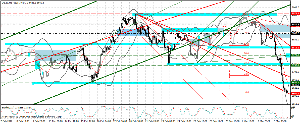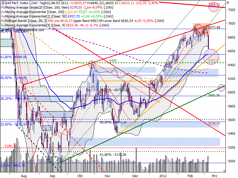 Sorry LoS, war gestern dienstlich weg. Da alle meine SLs aktiv wurden, bin ich jetzt flat. Auch in den Aktien. Die horizont. Unterstuetzung beim DAX 6650 scheint zu kippen (bisjezt). Dann wäre eine rutsche an die Fukushima-Tiefs realistich (satte 150 Punkte!!!). Da ich nicht intraday spiele und auch keine Shorts kaufen will (der Markt kann jederzeit drehen), wuerde ich diesen Absturz noch abwarten bevor ich mich neupositioniere.