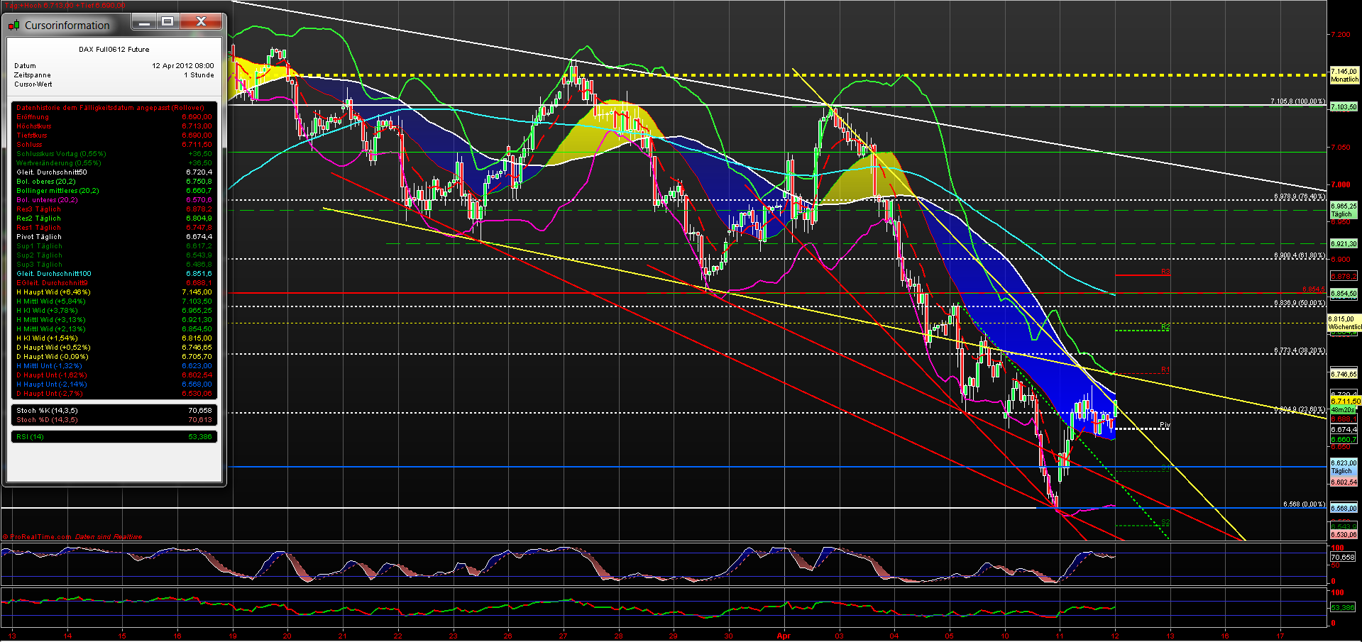 Spätestens ab 2731 F sollte die Erholung beendet sein, Stichwort „Kanaltrading“. Eine Trendbeschleunigung, d.h. Das Nichterreichen der oberen AUTK-Begrenzung muss man auf der Rechnung haben.