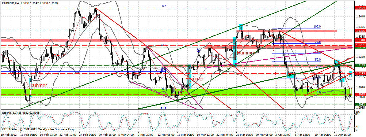 ABER diese starke Hammerkerze mahnt klar zur Vorsicht. Eigentlich hätte nach den beschriebenen Shortsignalen im Verlauf des heutigen Handels eher die 1,30 Marke brechen müssen.