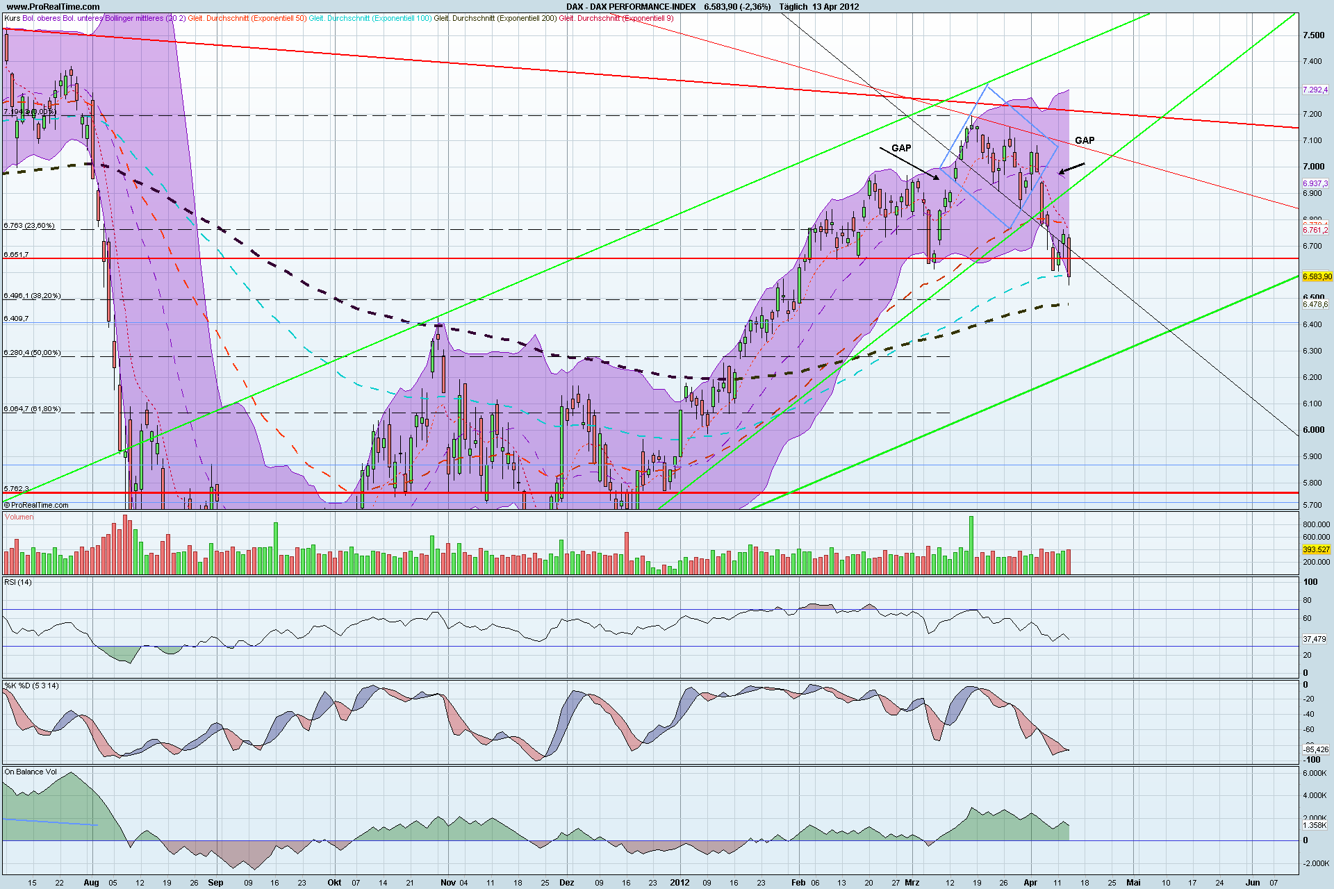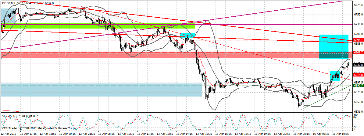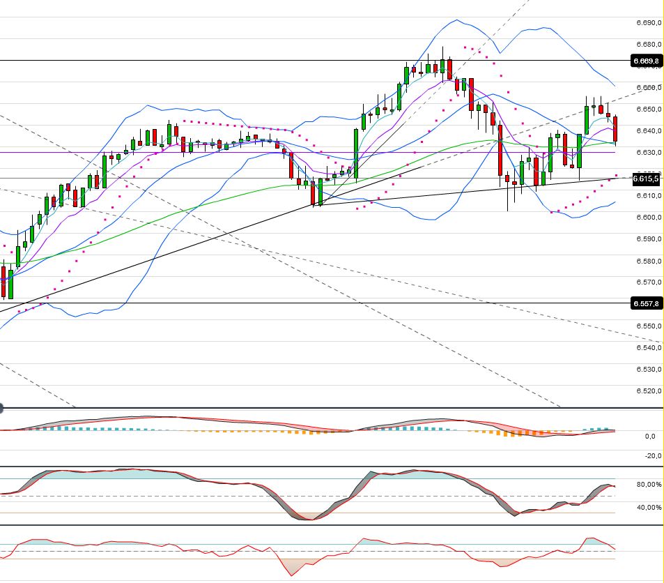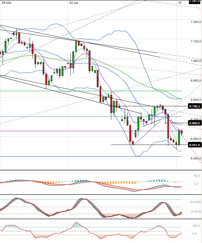 Der Dax sah zum Wochende grottenschwach aus, wird aber seit dem vorbörslichen Test der 6530iger Marke ( mBB Wochenchart) wieder nach oben gezogen und hat sogar wieder die 6666F Marke fast wieder zurückerobert.