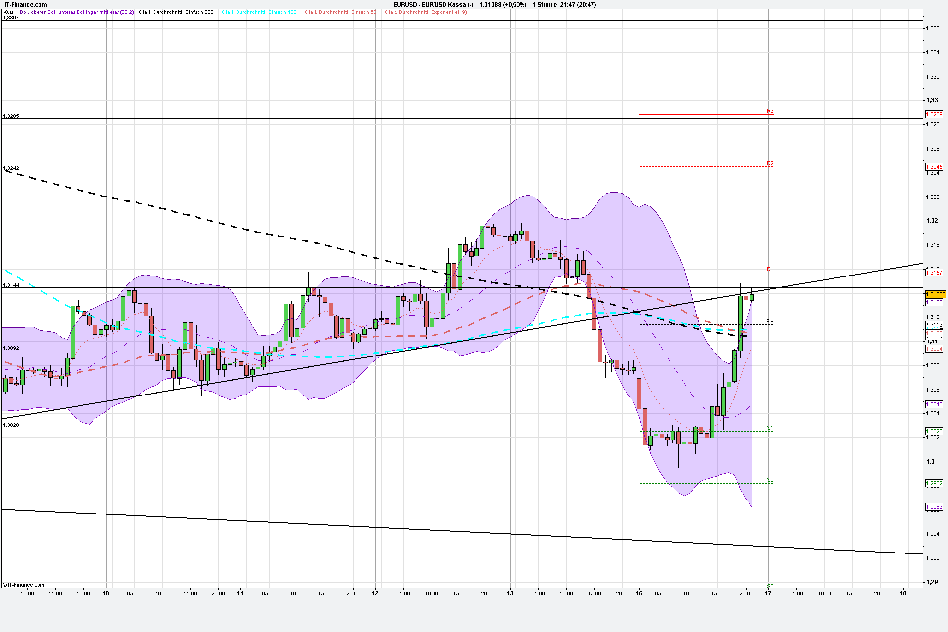 Der Markt ist sehr richtungsschwankend zurzeit. Eine Bruch des HW 1,3185, spätestens die Rückeroberung des maßgeblichen AUT´s bei aktuell 1,3208 wären bullisch.