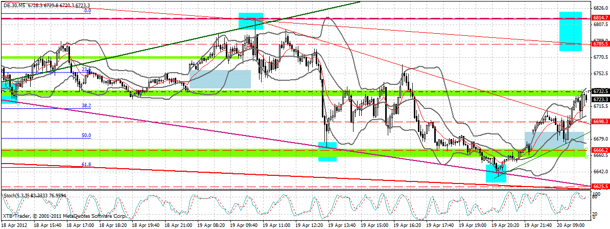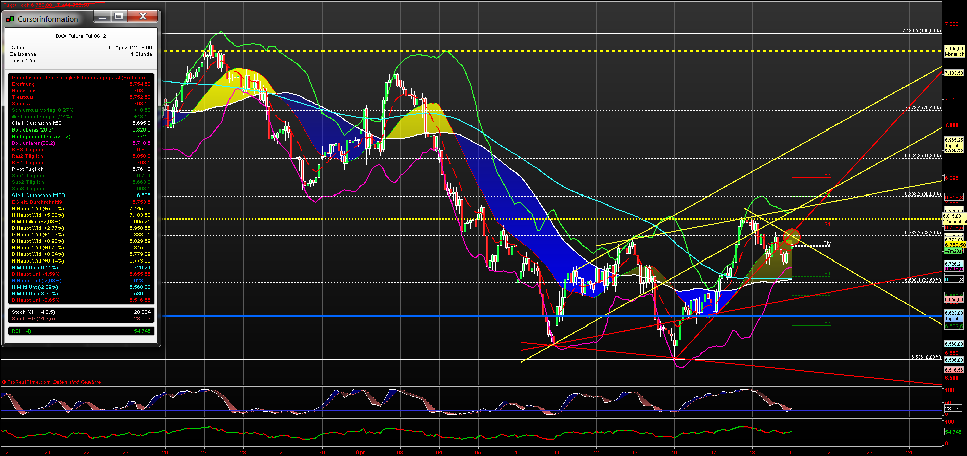 Heute eröffnet der Dax F mit einem GAP UP. Im Bereich aktuell bei 6707 F trifft der Dax F auf den kurzfristigen ABT von 6815 F.