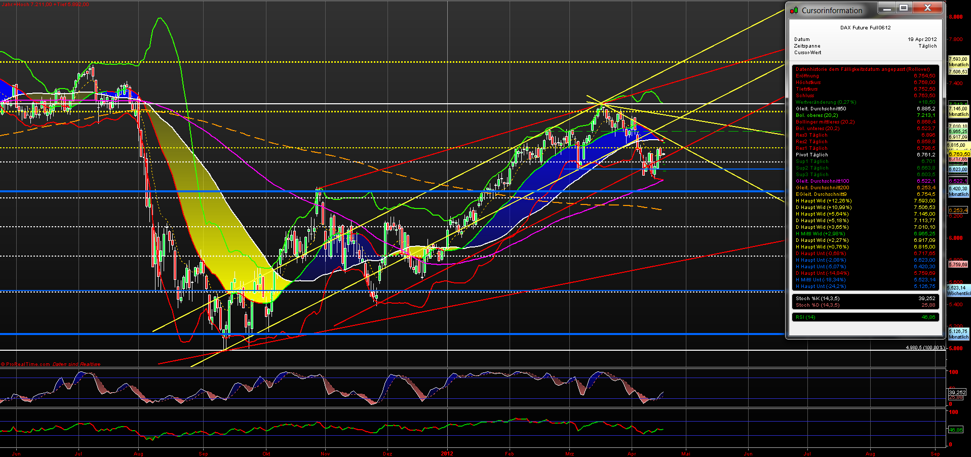 Bei aktuell 6787 F liegt der steilere, mehrwöchige ABT, der gestern durch den Abprall an der 6815 F entstanden ist. Hier könnte es bereits eine Reaktion nach unten geben.