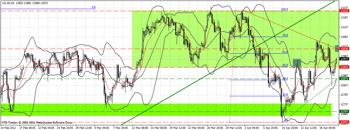 Wir hatten einen eine übergeordnete Seitwärtspanne 12930F/13222 F, aus der der DJ F nach Trendbruch des maßgeblichen Rallytrends nach unten durchrutschte.