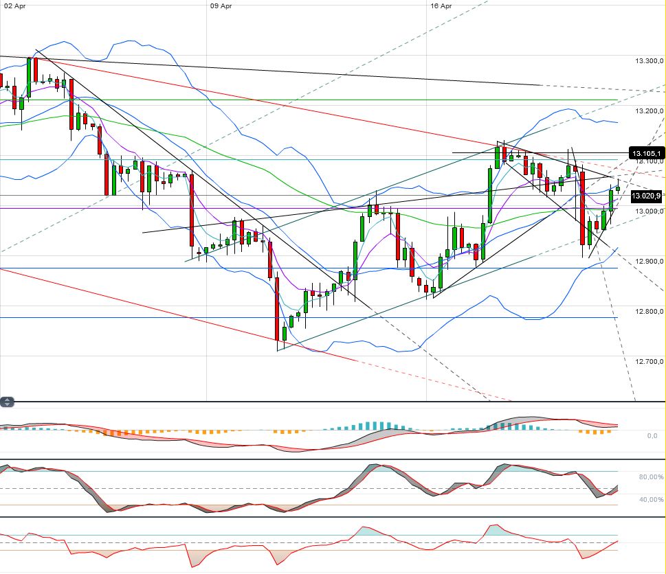 Aktuell notiert der Future am steigenden mBB 240iger. Aus meiner Sicht sollte heute mindestens ein Test des mehrwöchigen ABT´s bei aktuell 13026 F anstehen.
