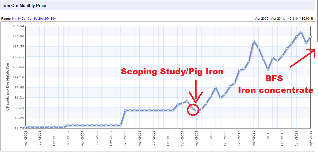 "A feasibility study assessing the potential to initially produce 2 million tonnes of iron concentrate per year from the Iron Project is scheduled for completion in June."