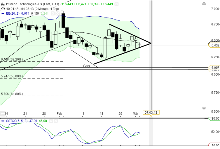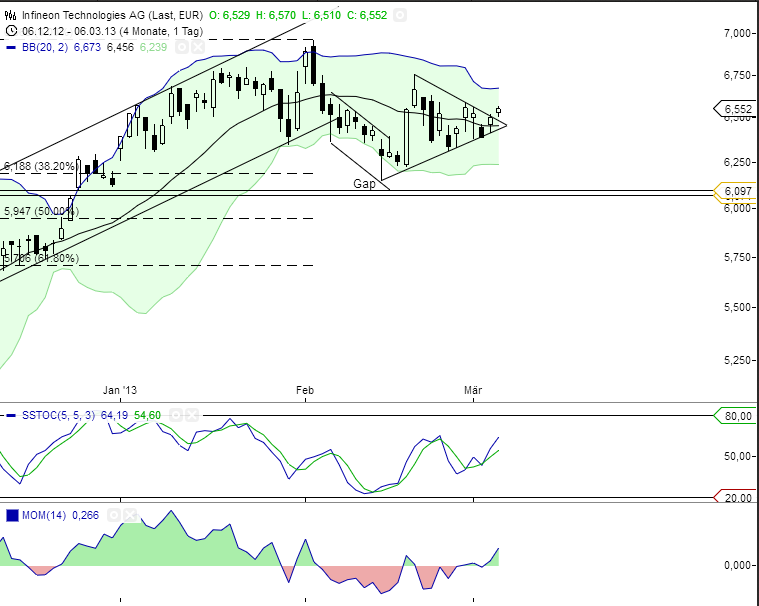 IFX ist soweit noch im Dreieck... bleibt also alles offen. befürchte aber ein ausbrechen nach unten, wenn der DAX nachlässt.