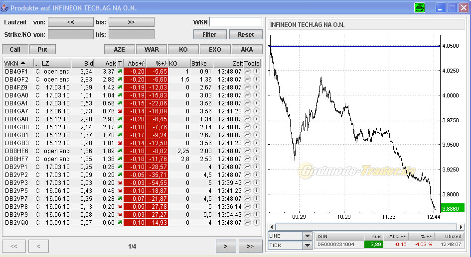 | LS4164 | Infineon Technologies AG | LSW | 08.06.2010 | Long | 3,80 | 3,80 | 3,67% | 3,67% | 16,43 | 0,220 | 0,240 |