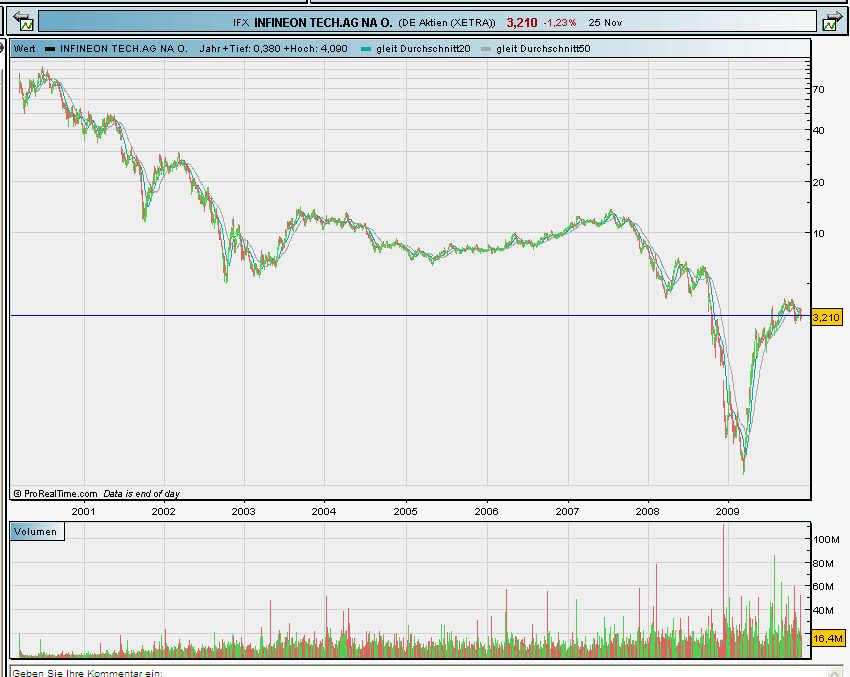 Fazit: Man wollte den Ball flach halten und aus etwas glimmendes kein Flächenbrand werden lassen, um den Kurs auch weiterhin flach zuhalten. Flach zuhalten, genau, seit Infineon kurzzeitig auf 4 Euro geklettert war wurde der Kurs nach Unten gedrückt obwohl der Gesamtmarkt gut gelaufen ist. Immer wieder wird man das Gefühl nicht los, das sowie der Kurs anzieht, ein Deckel rauf kommt. Natürlich kann dass Zufall sein, doch nach all den guten Zahlen und News ist das einfach unverständlich. So billig wie jetzt wird Infineon nie wieder zu haben sein. Möglicherweise ist gar nichts dran, an den Gerücht, aber ein komischer Geschmack bleibt schon.