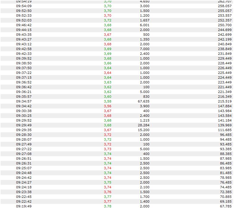 Meiner Meinung ist heute um ca. 09:30 der Kurs durch Verkäufe absichtlich auf 3,57 gedrückt wurden, weil heute Fälligkeit für mehrer OS (Calls) auf Infineon mit dem Basispreis 3,57 fällig wurden. Weil der Kurs heute bei 3,57 war, verfallen die OS, d.h. du bist dein Geld los. Ich bin selber betroffen, und hätte das nicht erwartet.