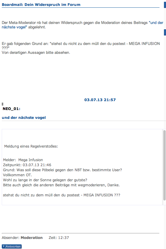 In #1011 hat er beispielsweise eindeutig Stellung bezogen und seine Kritik an Archon's Injex-Thread ebenfalls klar definiert. Ich bin mir nicht sicher aber kurz darauf wurde Bav von dem Thread ausgeschlossen und brachte seine 2.ID an den Start, als die auch aufflog, gründete er seinen eigenen Thread
