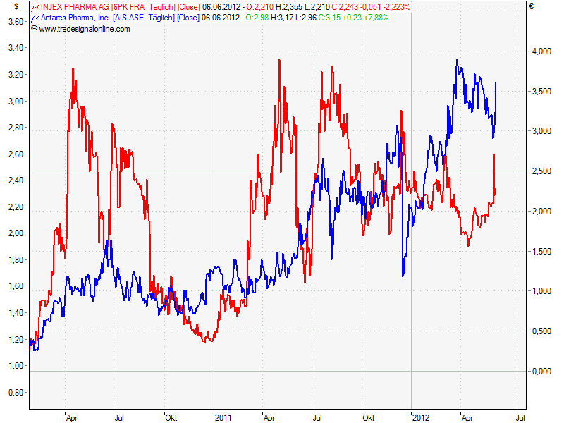 Rot ist die Injex und Blau ist Antares: