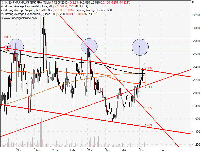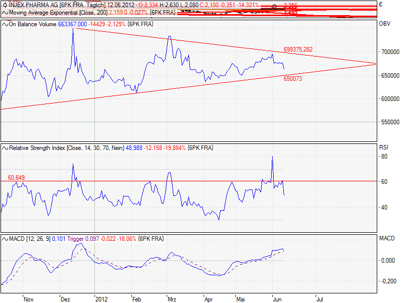 Der Kurs ist unterhalb der Unterstützung aktuell bei 2,10€ der Widerstandsbereich ist bei 2,113€