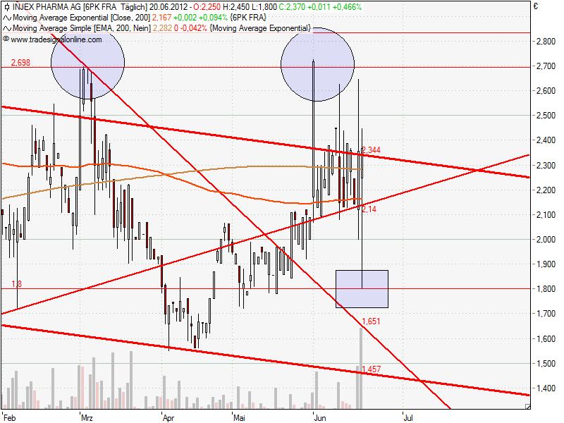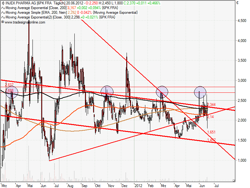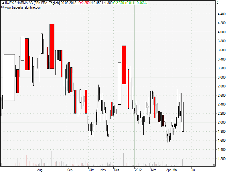 Man kann schön den Abwärtstrend erkennen mit den durch News getriebenen kurzen Ausbrüchen.
