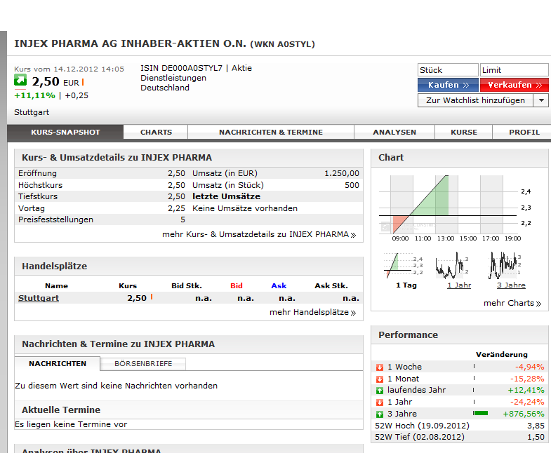 Bisher kann die Gesellschaft bzw. ihre Tochter INJEX Pharma GmbH den bei ihr vorhandenen Bestand verkaufen und kurzfristig liefern.