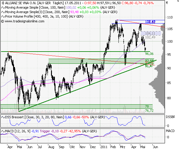 17.05.11Chartanalysen : Abwärtsbewegung - Allianz im Tiefenrausch - so profitieren Bären