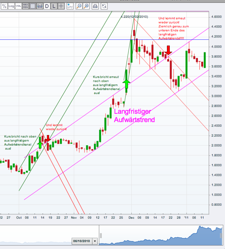 Seit dem 21.12.2010 ist der Kurs wieder in dem langfristigen