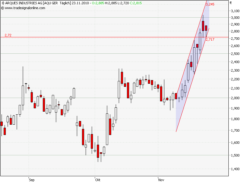 Ganz kurzfristig betrachtet, wirds sogar morgen schon interessant: Ich tät sagen, sollte der Kurs unter 2,80 bleiben, hätte man eine Wendeformation in den Candlesticks, und wer weiß was dann noch kommt.