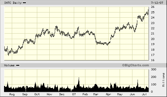 “Intel's operational execution continued to strengthen, resulting in an outstanding product roadmap and solid year-over-year revenue growth,“ said Intel President and CEO Paul Otellini. “We're pleased that our efforts to streamline the company are delivering profit growth in excess of revenue growth.“