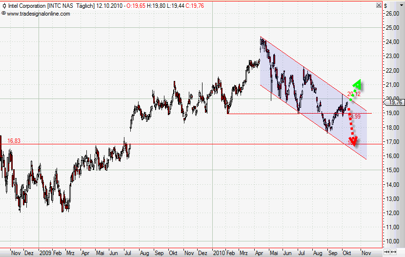 Man gehe davon aus, dass Intel für das abgelaufene Quartal ein EPS von 0,54 USD ausweisen werde. Die Konsensschätzung liege bei 0,53 USD. Für die Jahre 2011 und 2012 würden die EPS-Prognosen ohne Berücksichtigung der NVIDIA-Vereinbarung auf 1,95 USD respektive 2,05 USD lauten, womit man sich auf dem Niveau der Konsensschätzung befinde. Die Intel-Aktie werde derzeit bei einem 2011-KGV von 10,6 gehandelt. Das Kursziel sehe man bei 28,00 USD.
