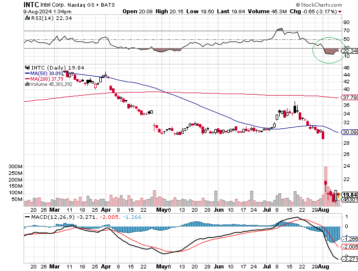 Intel beim Kurs von 19,50$ auf den "tangible book value" (Buchwert) gefallen. Das ist für ein größeres US-Techunternehmen eine Seltenheit. AMD z. B. notiert beim 15-fachen des Buchwertes, Nvdia sogar beim 50-fachen. AMD und Nvidia sind allerdings deutlich profitabler.