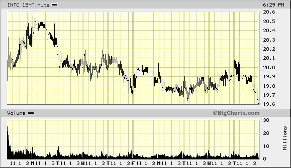 Die Intel-Aktie steht, vergleicht man den derzeitigen Kurs mit dem Kurs der letzten Jahre, recht tief. Größere Kursverluste gab es zuletzt wegen der Gewinnwarnungen im Januar.