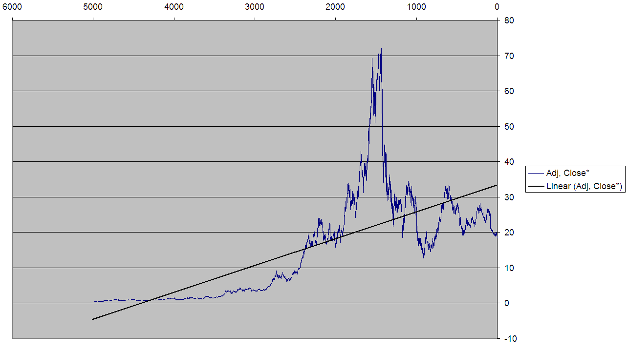 We all know that Itanic is darn great at least in Linpack, with over 90% efficiency in some cases - but its clock is nearly half that of Woodcrest, with the same peak FP rate per cycle anyway. So, for a dual-core 1.6GHz Montecito, we have 1.6 billion x 4 FP ops x 2 cores per second, or 12.8 GFLOPs Rpeak per socket. Times 0.9 for Rmax, we have 11.5 GFLOPs Rmax per socket, or roughly 23 GFLOPs Rmax per two-socket board.