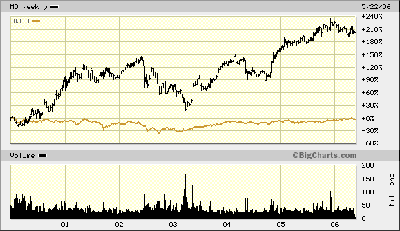 Am Montag und Dienstag fiel der DJ von ca. 300 auf 200 Punkte. Daytrader, die am Dienstagabend zu 200 einstiegen, konnten bis Donnerstagabend, als der DJ wieder auf 273 kletterte, satte 36.5 % Gewinn einstreichen. - wohlgemerkt mit dem Gesamtindex. (Details siehe unten und Chart)