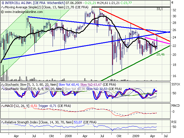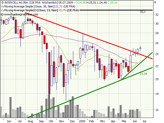 Intercell war heute auf Platz 1 der besten Empfehlungen der letzten Woche (KW25) auf sharewise: +20%.