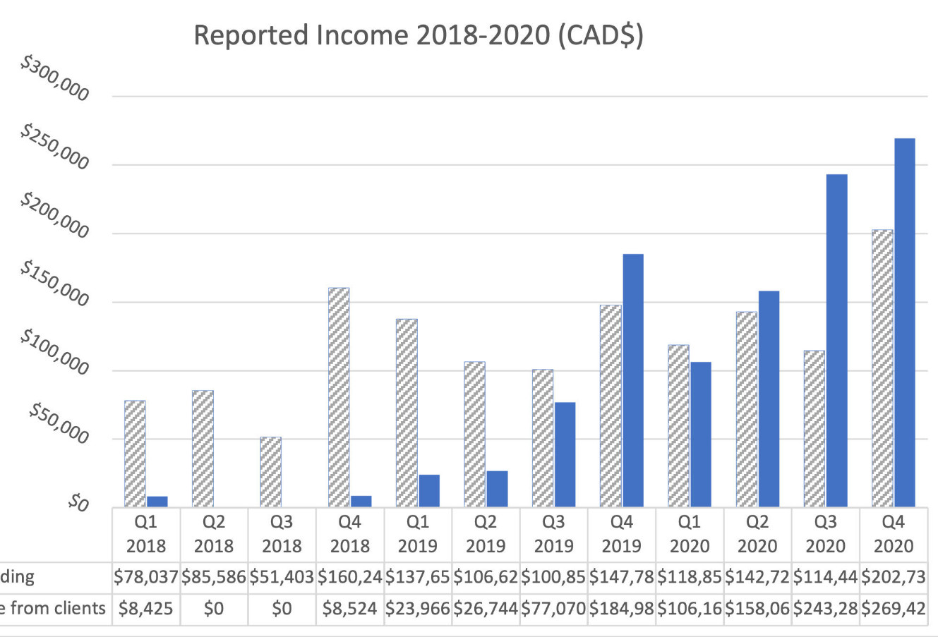 Die Umsätze im vierten Quartal 2020 lagen bei 142.374 CAD und damit fast doppelt so hoch wie im zweiten Quartal 2020.