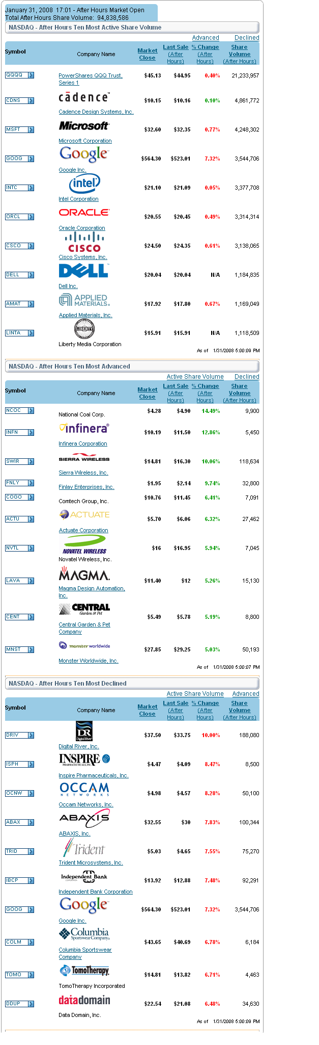 Still, investors seem to have gotten the message anyway. Google's (GOOG: 495.43, -20.47, -4.0%) once high-flying stock has slipped 12% in the two trading sessions since the report. The shares closed Monday below the $500 mark for the first time in nearly six months.
