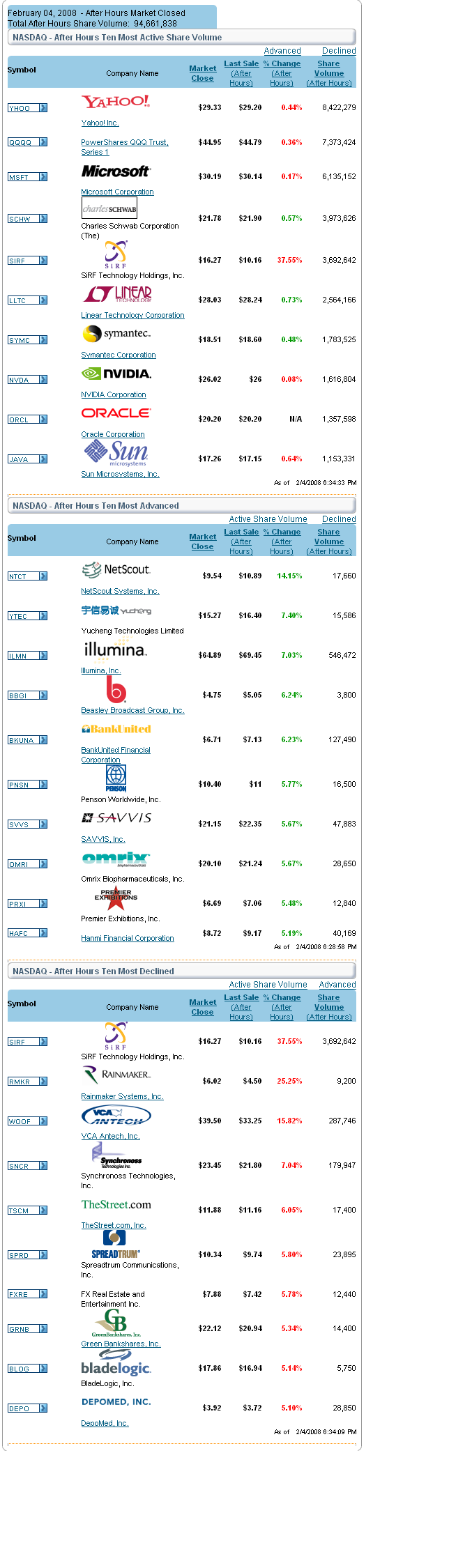 Last update: 7:02 p.m. EST Feb. 4, 2008